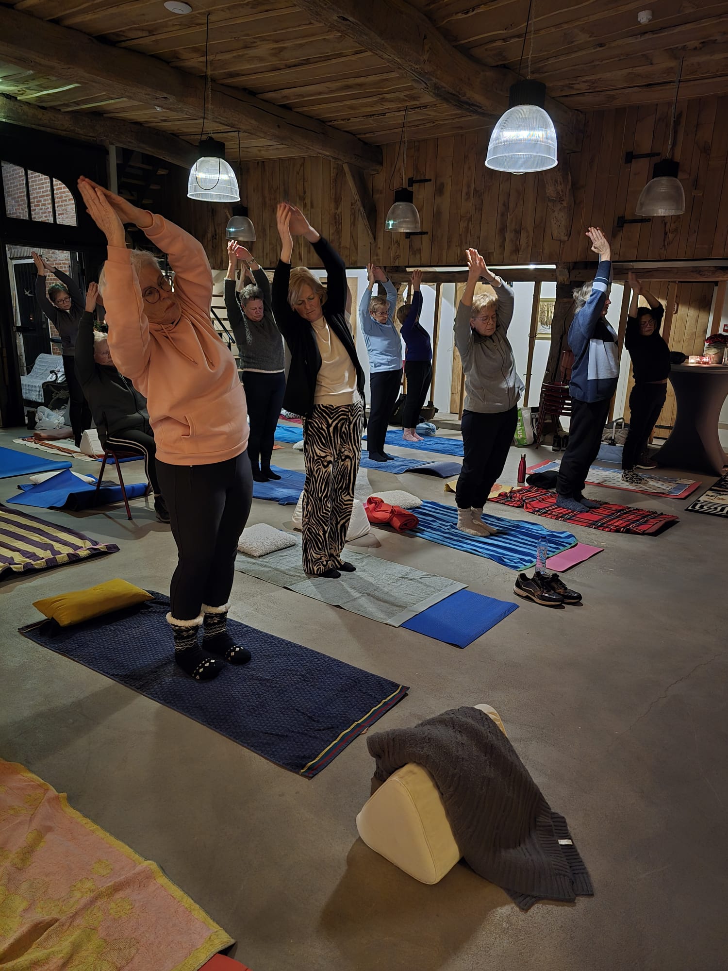 Afgelopen dinsdagavond 10 februari genoten twintig vrouwen van een heerlijke, ontspannen yogaworkshop, verzorgd door Sylvia Olde Scholtenhuis (ook lid van Vrouw Actief Reutum). De workshop vond plaats in de prachtig gerestaureerde boerderij van Erve Deperman. Al bij binnenkomst voelde je dat je de drukte van alledag achter je kon laten: een warme, lichte ruimte met zachte muziek en brandende kaarsen zorgden voor een fijne sfeer.